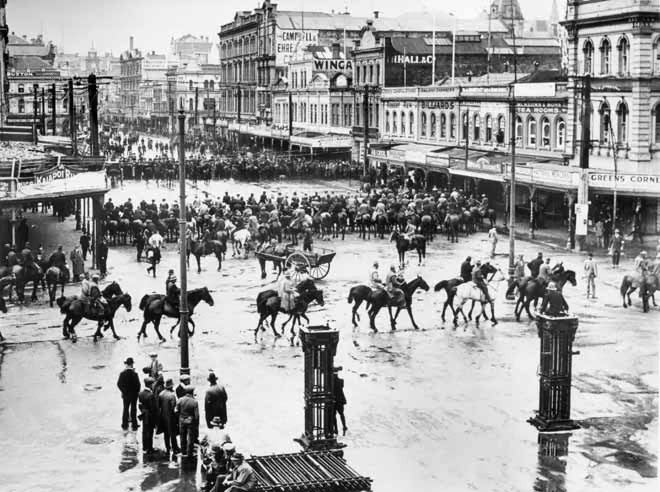 He aimed to bust open the wharves with a combination of violence and scab labour. A police union had briefly been active recently and Massey doubted their loyalty. He called up the volunteer special constables and also heavily armed troops, and had gunboats stationed off Auckland and wellington. The specials which became known as Massey's Cossacks, and were mostly drawn from the country side. Mostly on horseback, their purpose was to terrorise and brutalise the striking workers.